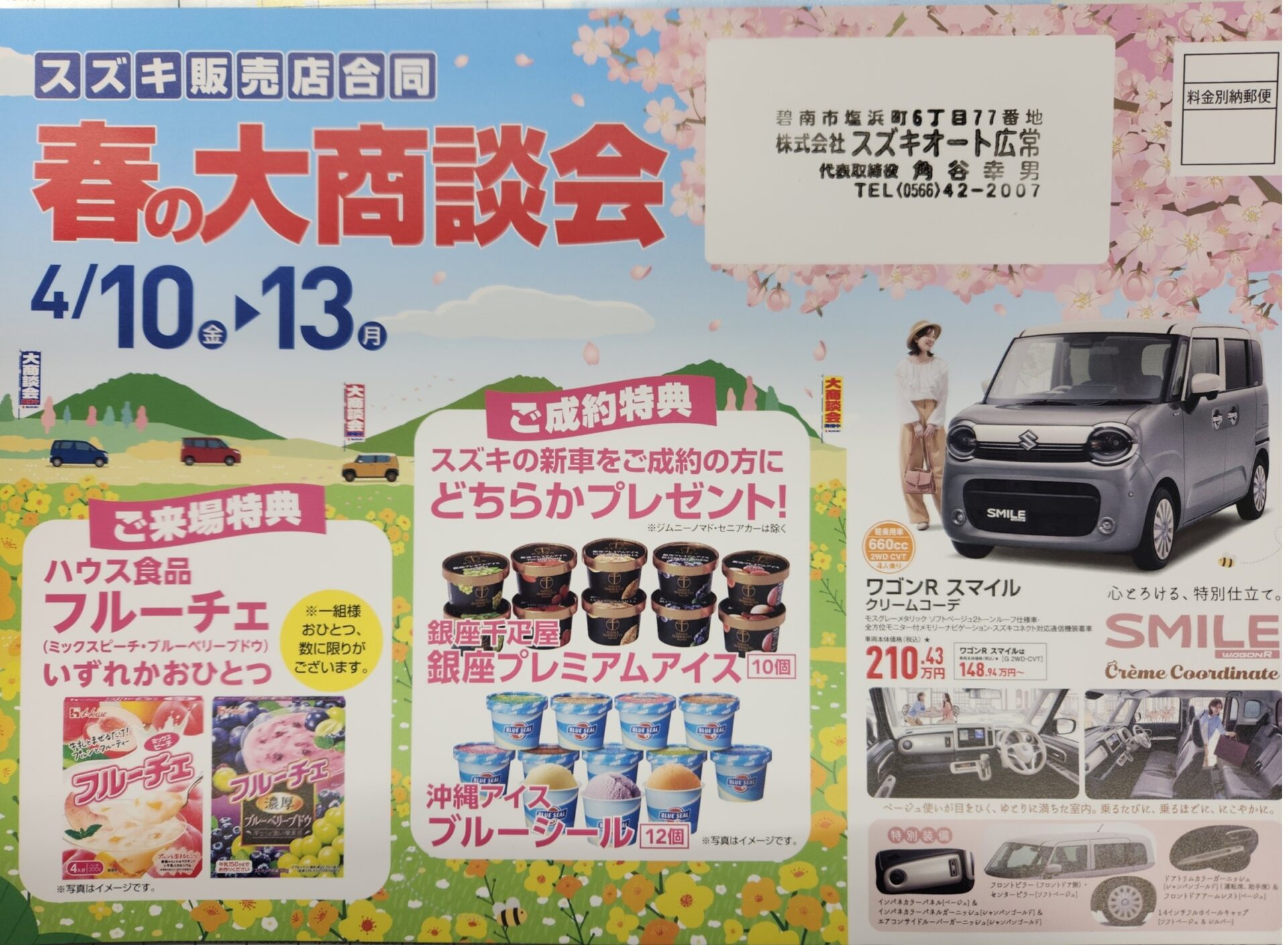 株式会社スズキオート広常は、スズキの副代理店として新車・中古車の販売を行っています。